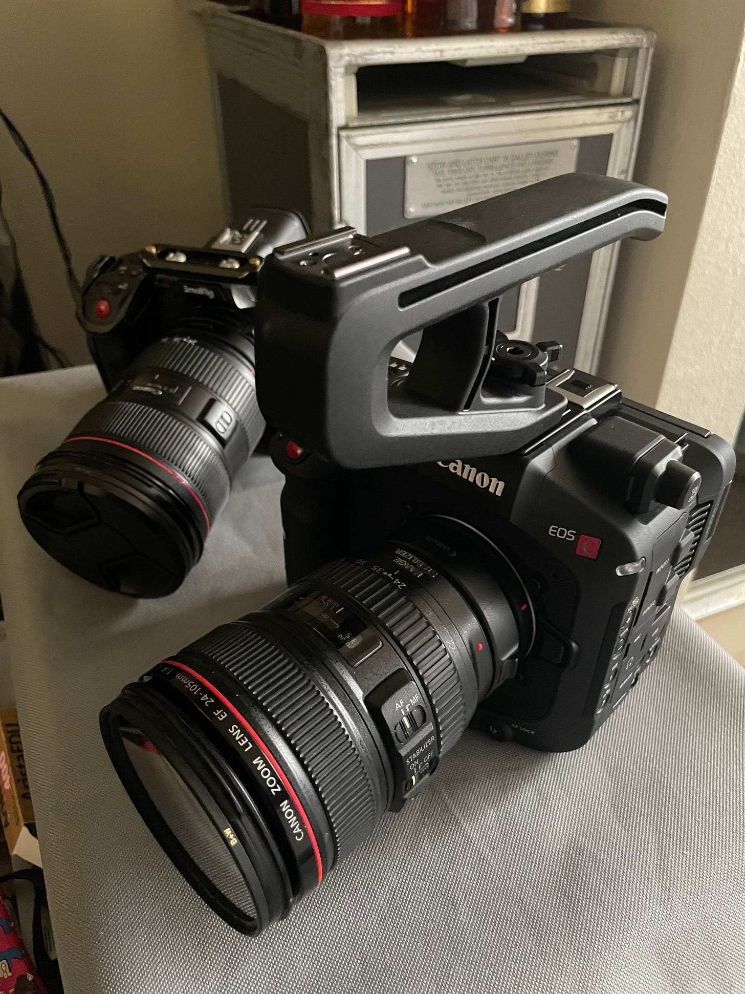 For a while, I have considered getting a second R5C. But I could really use better ergonomic support in a fast-paced, hectic show environment. The C300 mk ii has a much better layout for documentary work; the downside is that it has a Super-35 sensor. The C70 is a popular choice, though it also has a Super-35 sensor. And neither of them has good autofocus tracking.